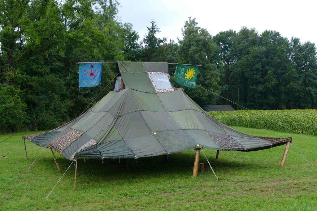 Im Lager Zelten wir oft und so sieht beispielsweise unser Aufenthaltszelt aus.